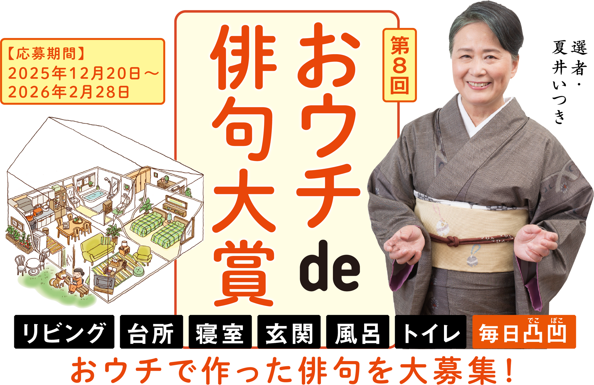 夏井先生が選者を務める、第8回「おウチde俳句大賞」の作品の応募期間は2025年12月20日(土)から 2026年2月28日(土)までです。